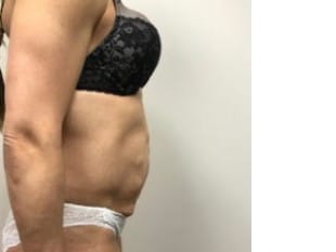 38 year old female shown before and 11 months after an abdominoplasty. The patient has delivered two children and is 5’7” 145 pounds. The abdominal wall had a hernia present and excess skin. Skin excision and muscle tightening was done via an extended C section incision. All procedures done by Frank J. Ferraro, MD at pssnj.com